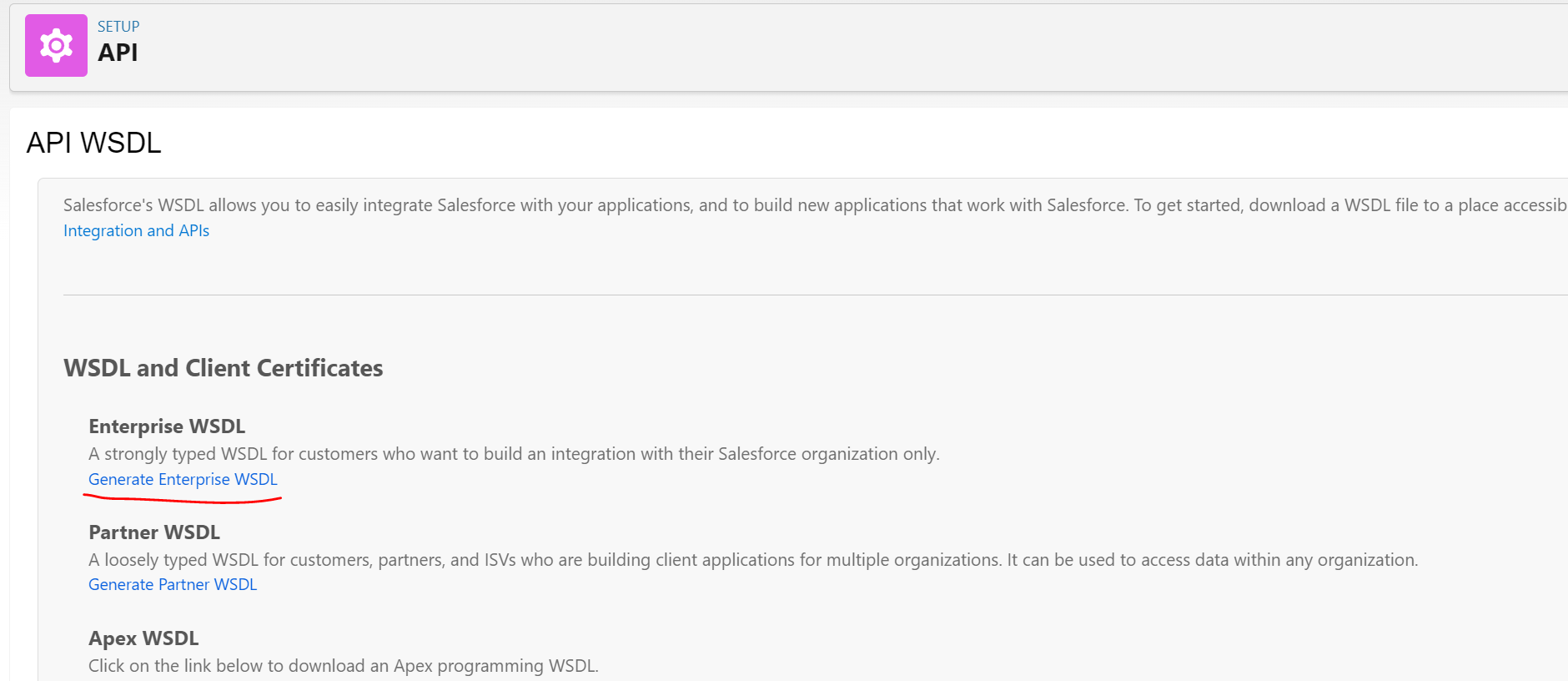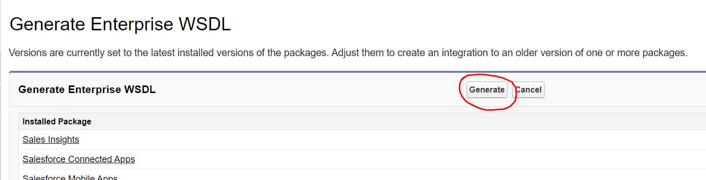 위 화면에서 "Generate Enterprise WSDL" 링크를 누르면 아래 화면이 나오는데, 여기서 그냥 Generate 버튼을 누르면 된다.